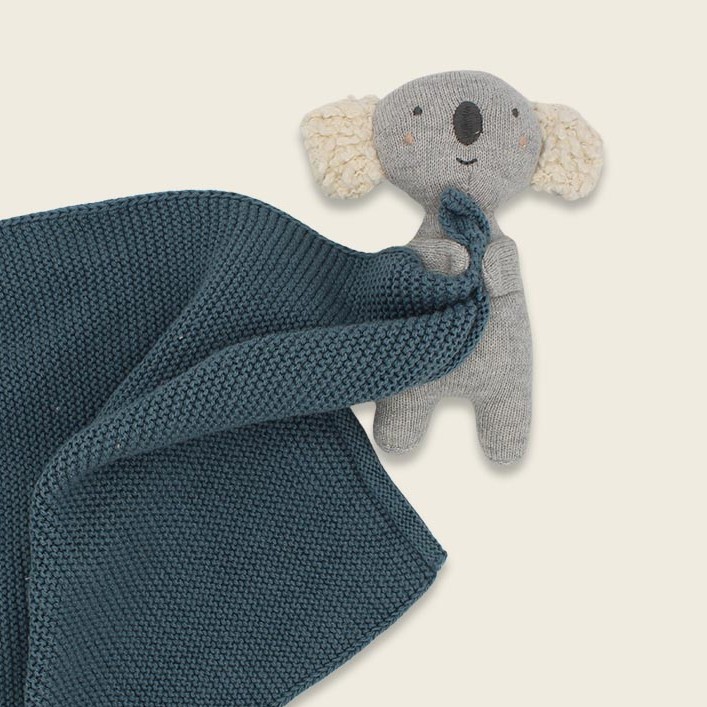 Bio Schnuffeltuch Koala blau– Personalisierbares Bio-Kuscheltuch für Babys | Geschenkidee