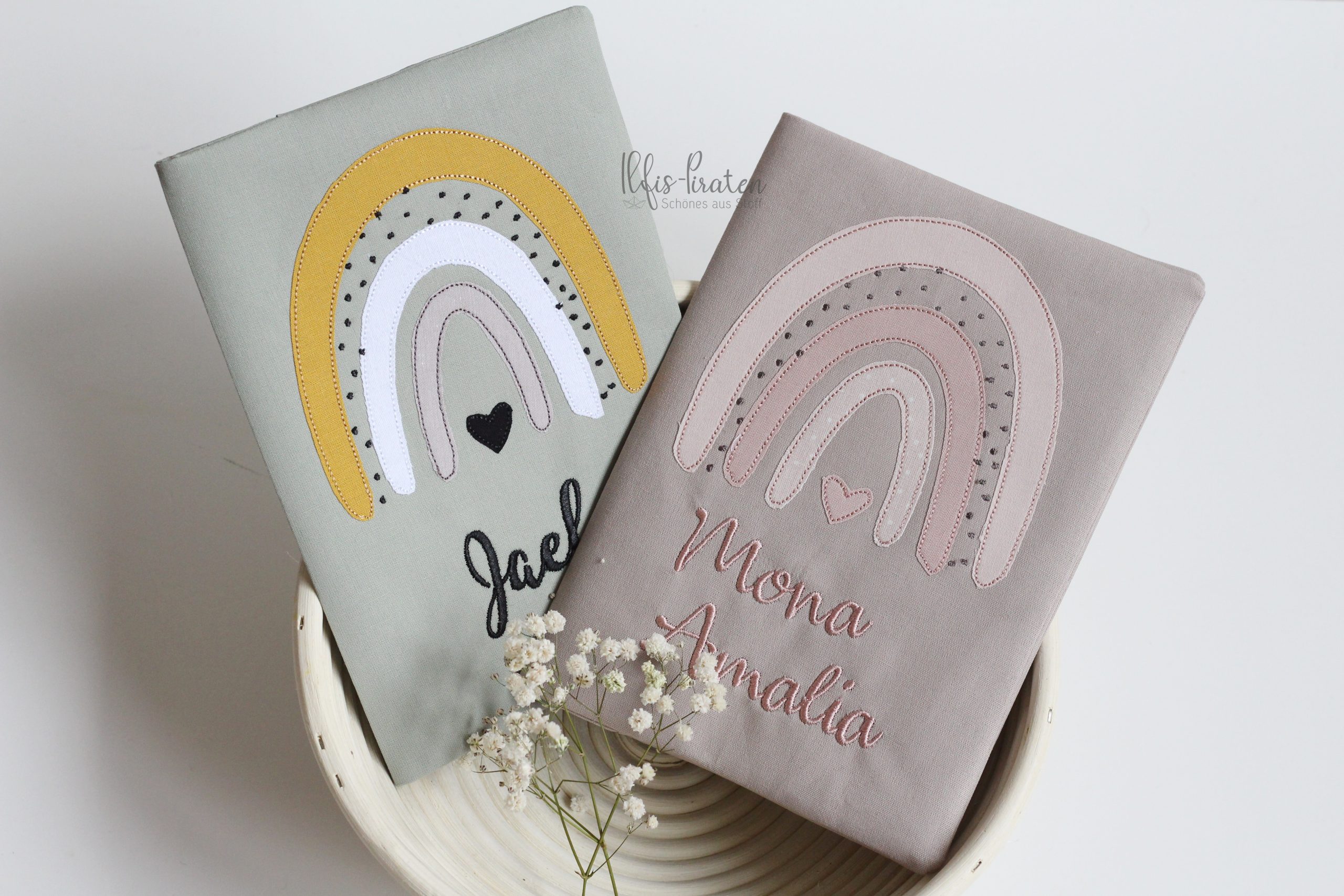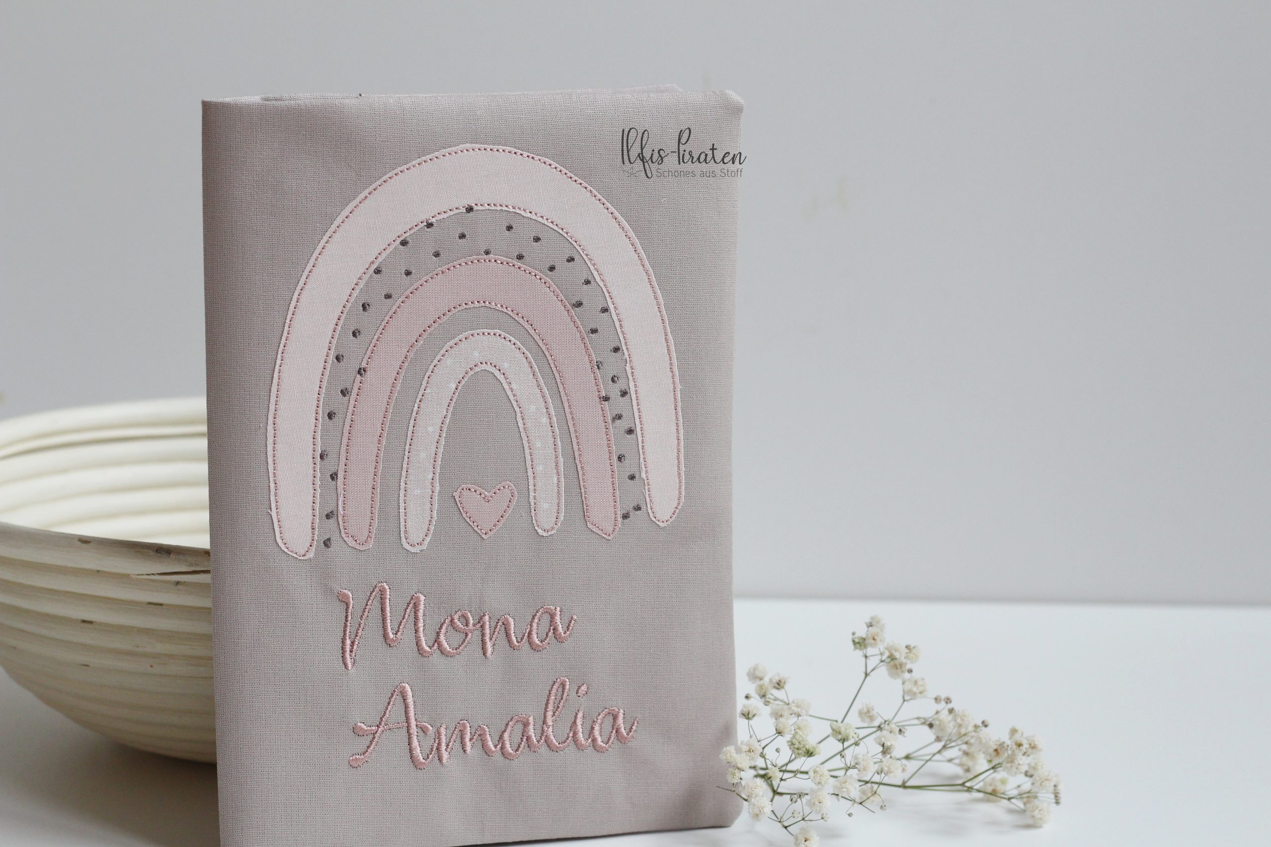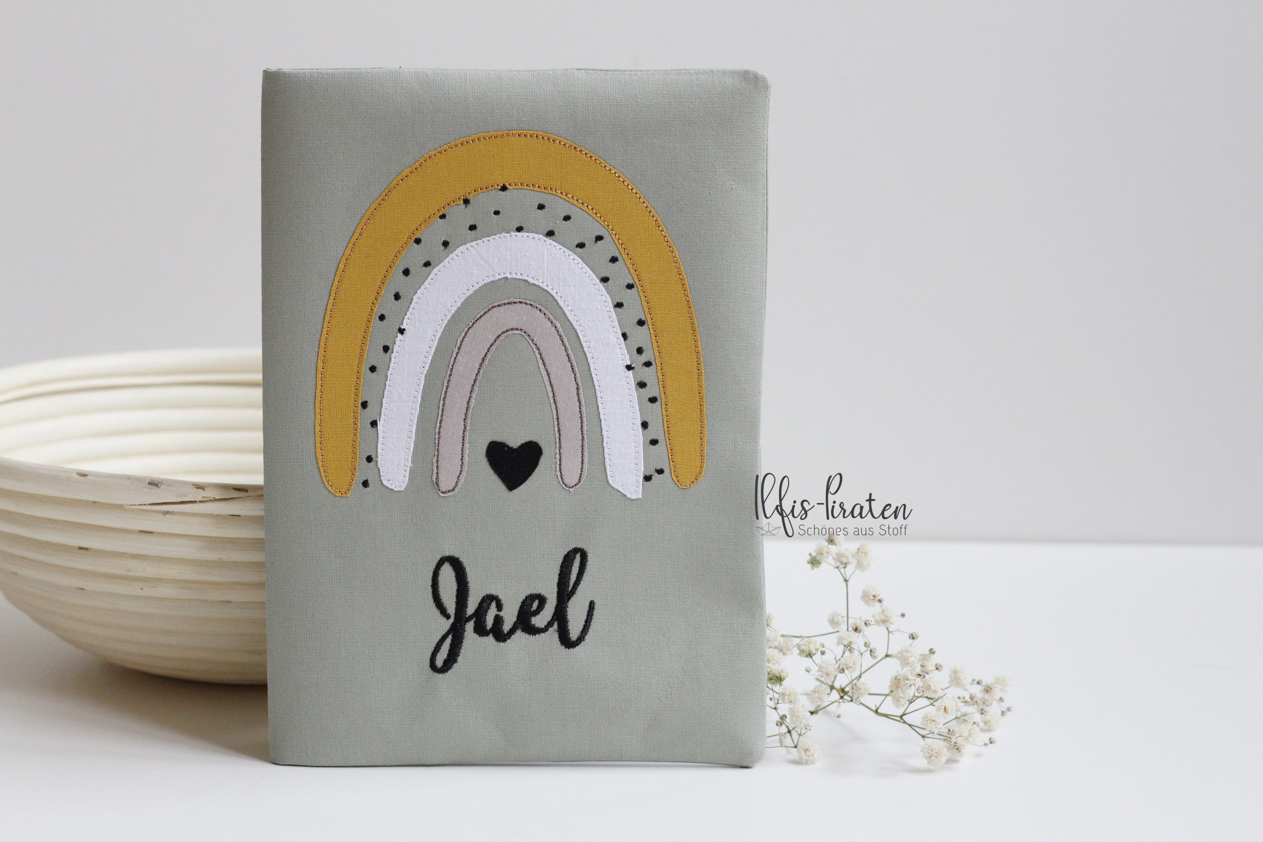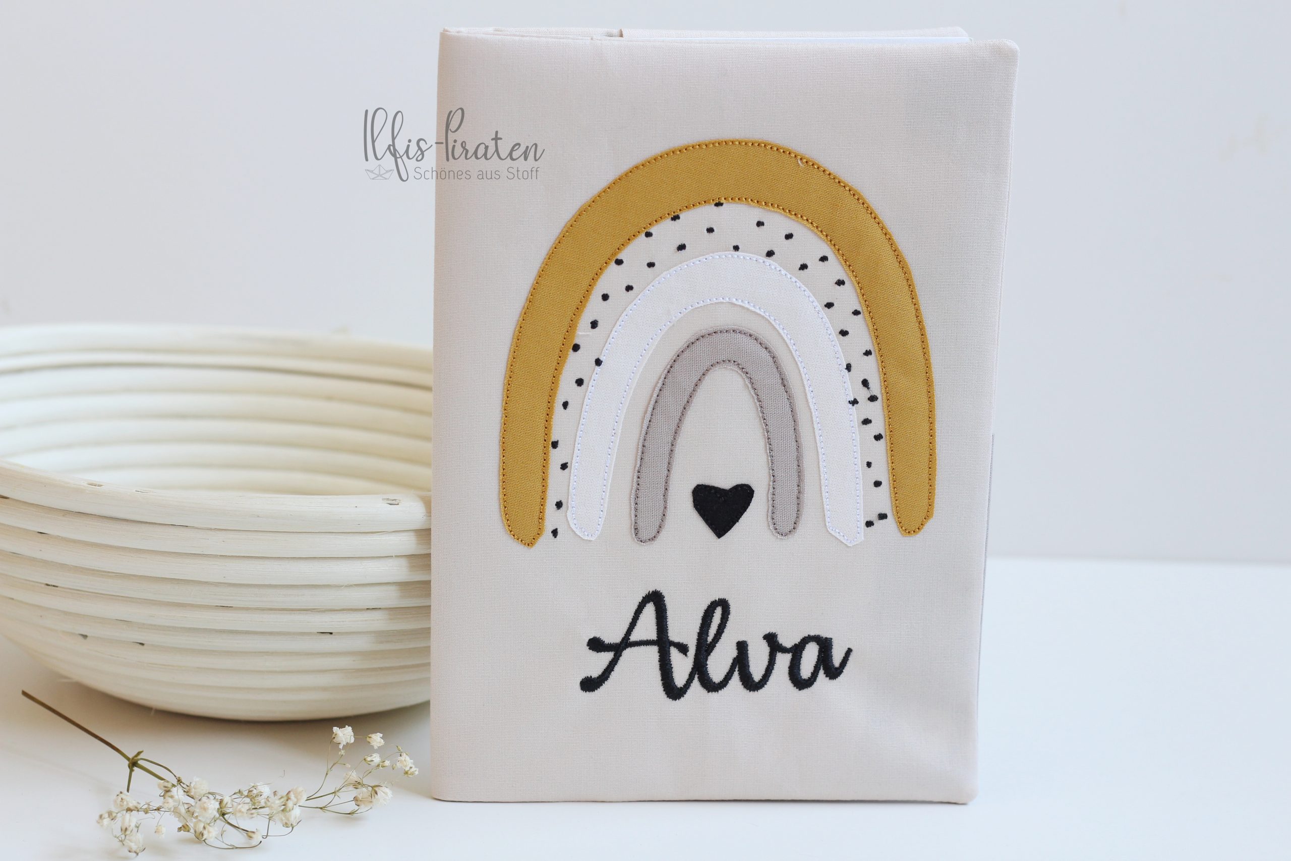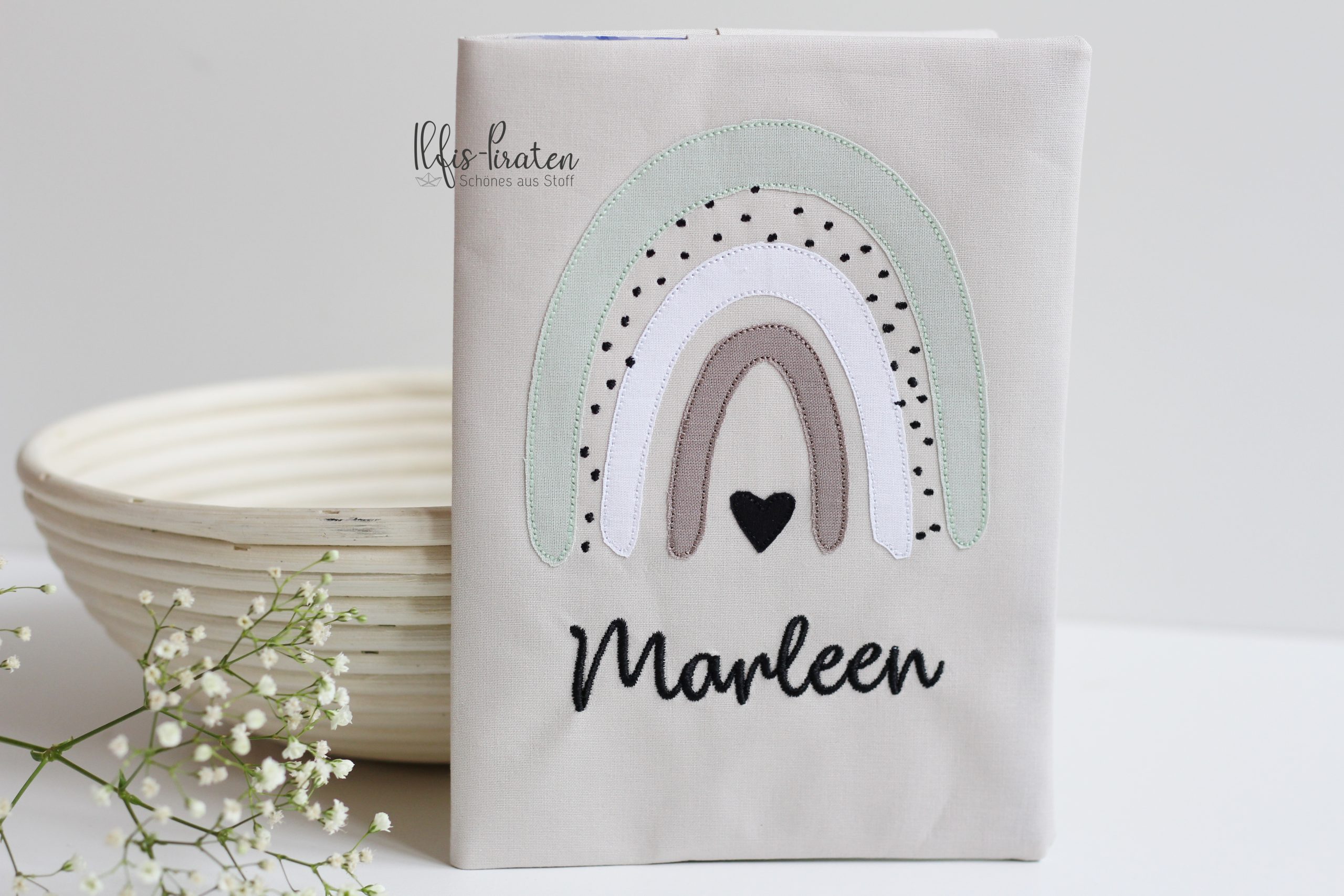 Du bist auf der Suche nach einem Gesundheitshefthülle bestickt mit tollem Regenbogen?
